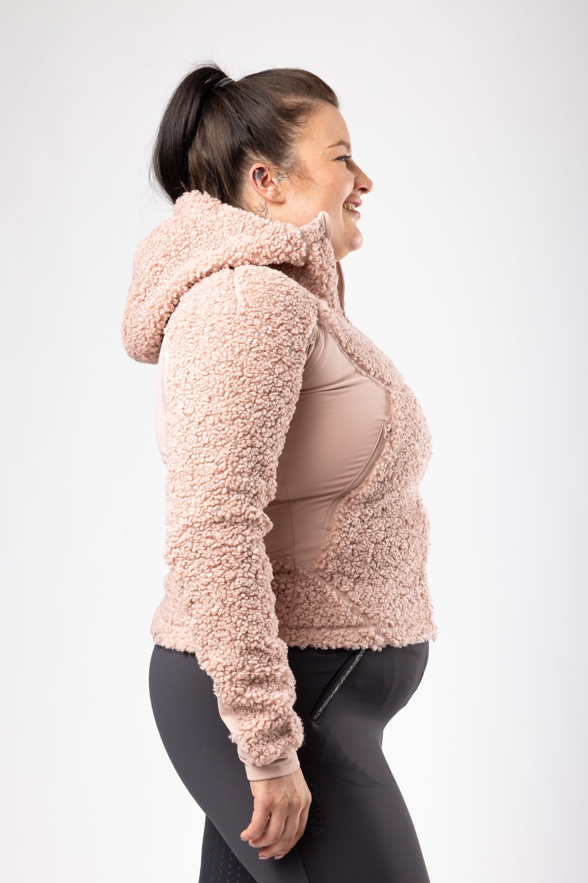 Unsere Teddyjacke CELIA in zartem Rosé ist dein perfekter Begleiter für Stall, Turnier und Alltag. Der taillierte Schnitt und die hochwertige Verarbeitung sorgen für eine feminine Silhouette – ohne auf Funktionalität zu verzichten.